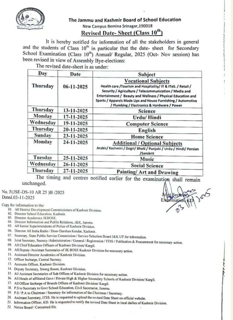 JK News Today Updated date sheet of Class 10 exams in Kashmir Post navigation Mirwaiz Umar Farooq Once Again Figures Among the World’s 500 Most Influential Muslims Lieutenant Governor visits Chishoti Paddar in Kishtwar, lays foundation stone for construction of new houses for flood-affected families