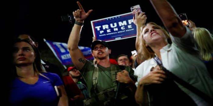 A crowd of Donald Trump supporters, some armed with rifles and handguns, gathered outside an election center in Arizona on Wednesday night after unsubstantiated rumors that votes for the Republican president were deliberately not being counted.
