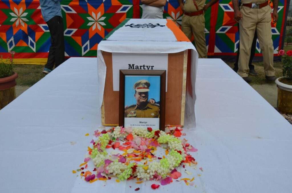 Senior police officers and family members of the martyr led by ADGP Armed/IR J&K SJM, Gillani laid floral wreaths on the mortal remains and paid rich tributes to the martyr for his supreme sacrifice.